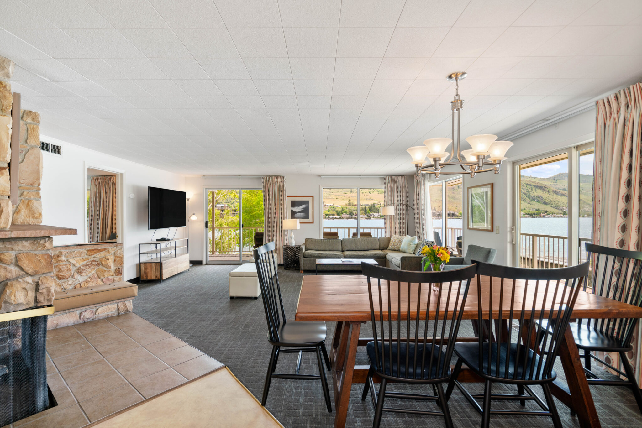 The Penthouse suite provides a spacious getaway overlooking beautiful Lake Chelan. This two bedroom apartment offers a master bedroom with king bed, flatscreen TV, and its own mast…- Two bedroom unit