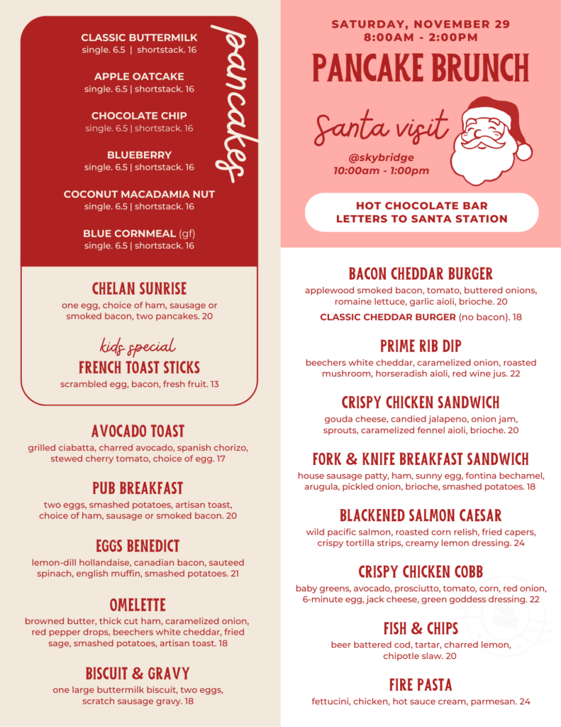 Join us for a Pancake Brunch with Santa at the Pub & Veranda and soak in the charm of a true small-town Christmas.